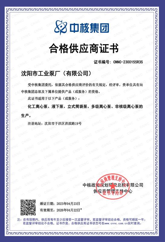 中核集團(tuán)合格應(yīng)商證書(shū)