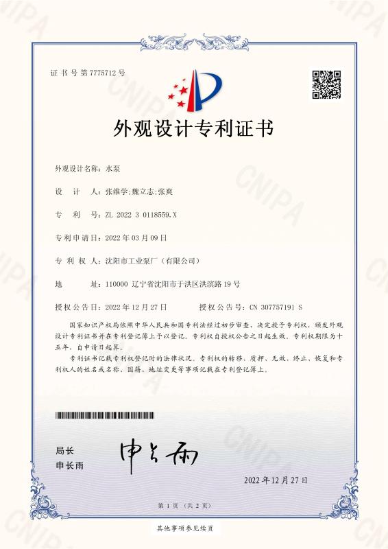 水泵證書