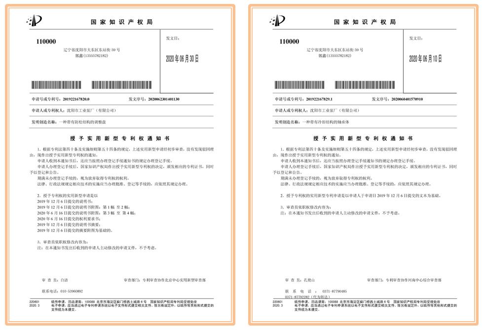 祝賀沈陽市工業(yè)泵廠(有限公司)多項(xiàng)專利被授權(quán)