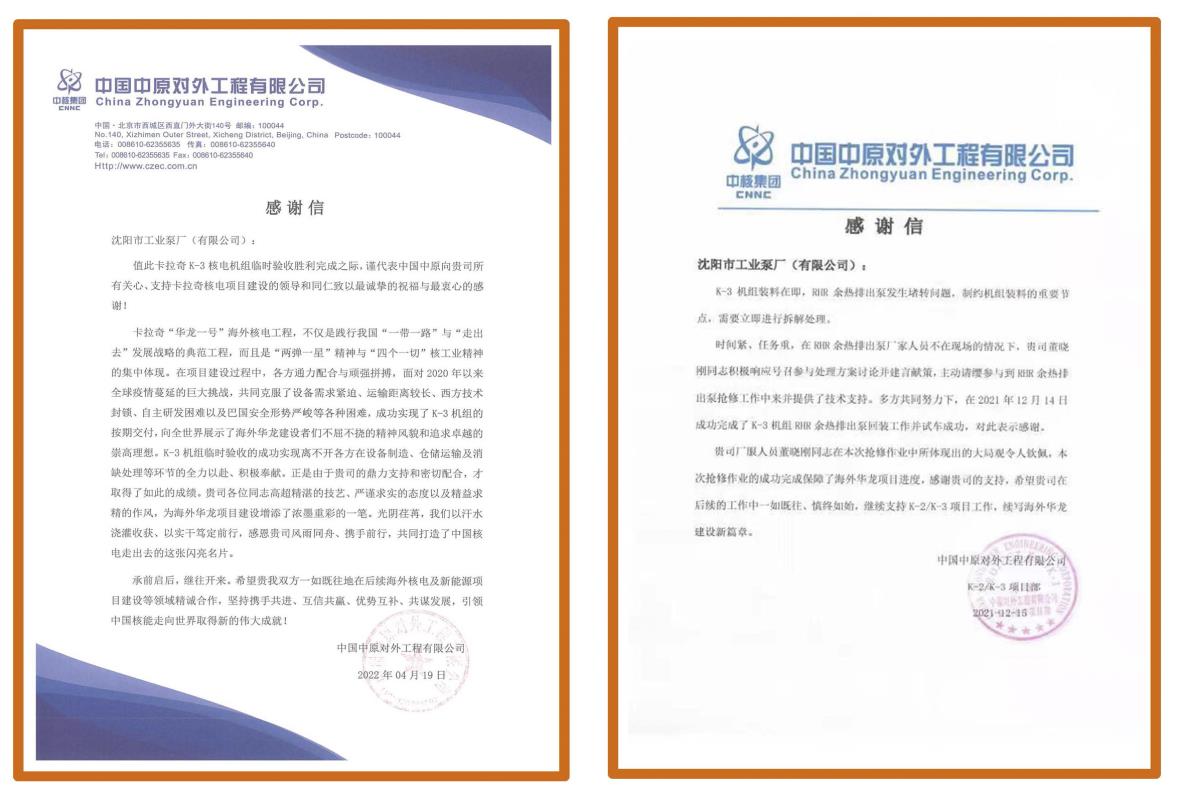 當(dāng)地時(shí)間4月18日,我國(guó)自主三代核電華龍一號(hào)全球第四臺(tái)、海外第二臺(tái)機(jī)組——巴基斯坦卡拉奇K3機(jī)組通過(guò)臨時(shí)驗(yàn)收。至此,華龍一號(hào)海外首個(gè)工程兩臺(tái)機(jī)組K2、K3機(jī)組全面建成投產(chǎn)。作為我國(guó)核電走向世界的“國(guó)家名片”,華龍一號(hào)是當(dāng)前核電市場(chǎng)接受度最高的三代核電機(jī)型之一,是中核集團(tuán)堅(jiān)持走中國(guó)特色自主創(chuàng)新道路,在總結(jié)30余年核電科研、設(shè)計(jì)、建設(shè)、運(yùn)行和管理經(jīng)驗(yàn)的基礎(chǔ)上,研發(fā)設(shè)計(jì)的具有完全自主知識(shí)產(chǎn)權(quán)的三代壓水堆核電創(chuàng)新成果,滿足國(guó)際最高安全標(biāo)準(zhǔn),完全具備批量化建設(shè)能力,已成為中國(guó)為世界貢獻(xiàn)的三代核電優(yōu)選方案。巴基斯坦卡拉奇2、3號(hào)機(jī)組由中核集團(tuán)中國(guó)中原對(duì)外工程有限公司承建,中核工程、中國(guó)核電、核動(dòng)力院等單位參建。我公司作為該項(xiàng)目的重要設(shè)備供應(yīng)商,為卡拉奇核電站K2、K3項(xiàng)目提供了共計(jì)130多臺(tái)套的泵類產(chǎn)品,這些設(shè)備中包括了4臺(tái)常規(guī)島閉式循環(huán)水泵、4臺(tái)低加疏水泵、120余臺(tái)核島非核級(jí)離心泵和空調(diào)系統(tǒng)用泵,目前這些設(shè)備均順利安裝調(diào)試并投運(yùn)。為K2K3項(xiàng)目順利商運(yùn)做出了自己應(yīng)有的貢獻(xiàn)。2021年12月15日,鑒于我公司現(xiàn)場(chǎng)服務(wù)人員的突出貢獻(xiàn),中原對(duì)外工程有限公司K2K3項(xiàng)目部特地發(fā)來(lái)感謝信,信中給予我公司現(xiàn)場(chǎng)服務(wù)人員高度評(píng)價(jià)和充分肯定。2022年1月“華龍一號(hào)”海外首堆工程黨建聯(lián)建聯(lián)合委員會(huì)、中原對(duì)外工程有限公司K2/K3項(xiàng)目部又授予我公司廠服技術(shù)人員攻堅(jiān)克難先進(jìn)個(gè)人稱號(hào)。2022年4月19日,中國(guó)中原對(duì)外工程有限公司值此卡拉奇K3項(xiàng)目核電機(jī)組臨時(shí)驗(yàn)收勝利完成之際發(fā)來(lái)感謝信,對(duì)我公司在項(xiàng)目建設(shè)過(guò)程中的鼎力支持和密切配合表示衷心的感謝。未來(lái)我公司還將繼續(xù)參與更多的國(guó)內(nèi)外核電項(xiàng)目,我們將繼續(xù)秉承為客戶提供高品質(zhì)產(chǎn)品和服務(wù)的理念,全心全意為客戶服務(wù),為中國(guó)核電走向世界貢獻(xiàn)力量。